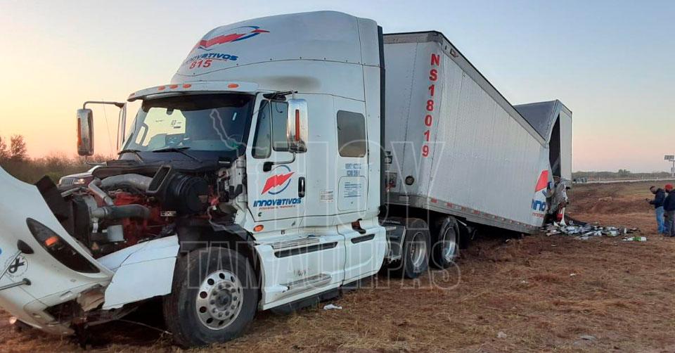 Por poco se mata trailero en accidente cerca de Nuevo Laredo