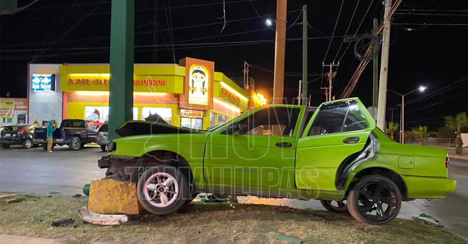 Vuelca tras chocar contra arbotante en Nuevo Laredo