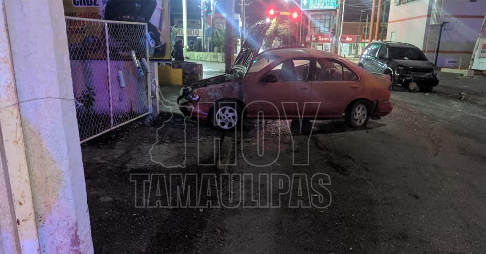 Abandona su automóvil tras chocar semáforo en Nuevo Laredo