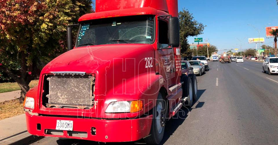 Trailero cambia de carril y embiste coche en Nuevo Laredo