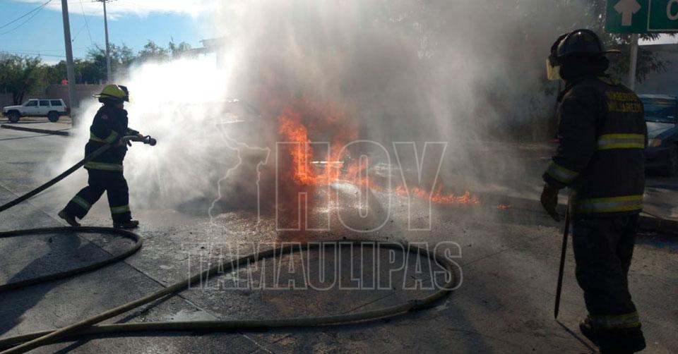 Se incendia vehículo estacionado en crucero de Nuevo Laredo