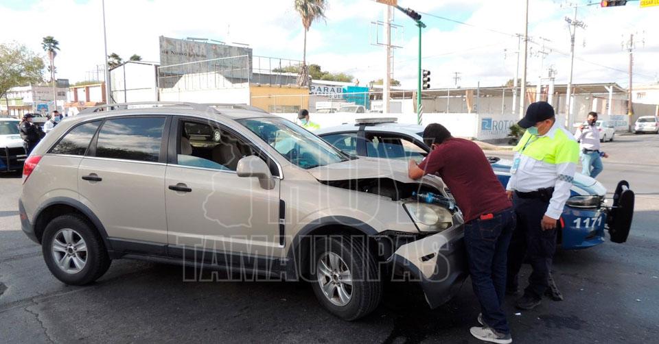 Causa policía choque en Nuevo Laredo al pasarse el rojo del semáforo