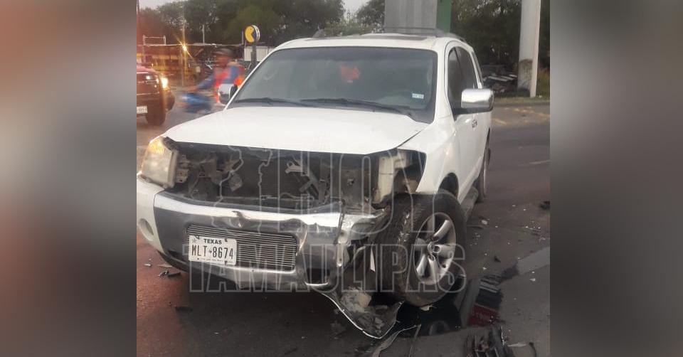 Se pasa alto y choca contra camioneta en Nuevo Laredo
