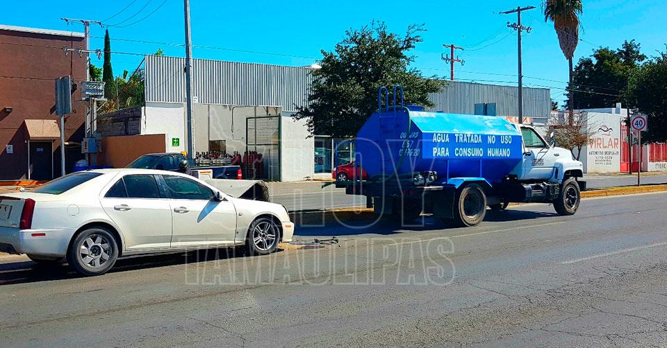 Conductor se ensarta contra pipa de agua en Nuevo Laredo
