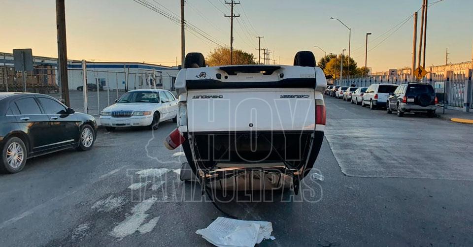 Abandona vehículo tras volcadura en Nuevo Laredo