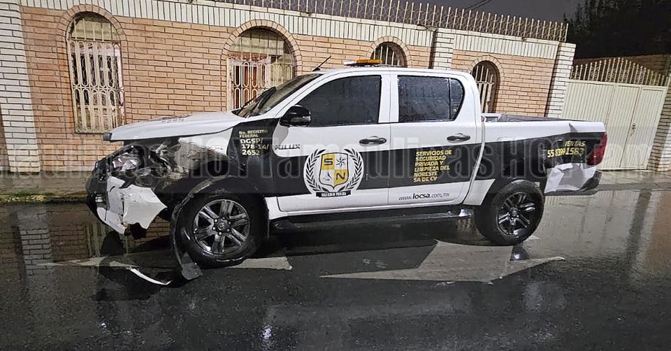 Camioneta de seguridad privada provoca encontronazo en Nuevo Laredo
