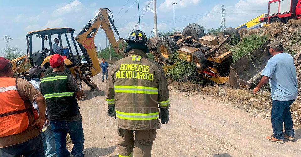 Operador de retroexcavadora sale ileso tras volcadura en Nuevo Laredo