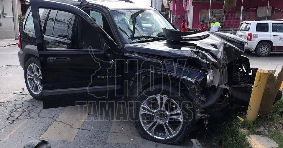 Mujer ignora luz roja y provoca encontronazo en Nuevo Laredo
