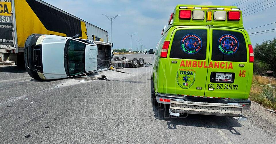 Volcadura de camioneta deja un lesionado en Nuevo Laredo