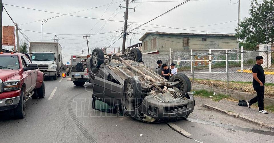 Jovencito sale ileso tras volcadura en Nuevo Laredo