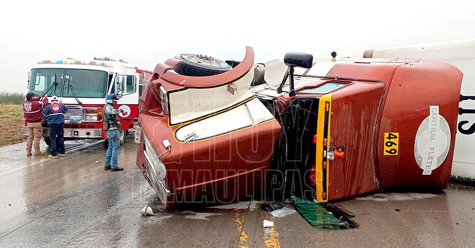 Vuelca operador de tráiler en Nuevo Laredo
