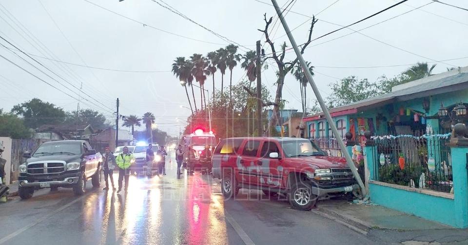 Daña arbotante con su camioneta en la Victoria de Nuevo Laredo