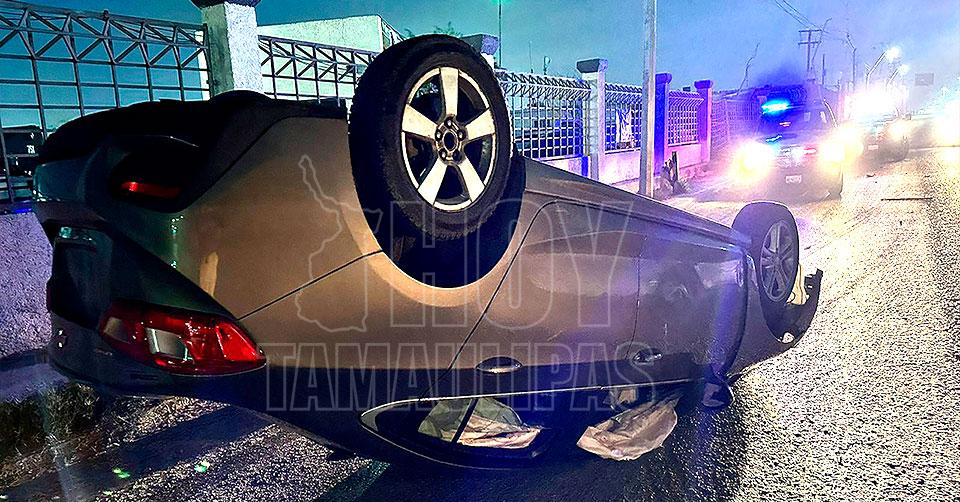 Escapa tras sobrevivir a volcadura en Nuevo Laredo