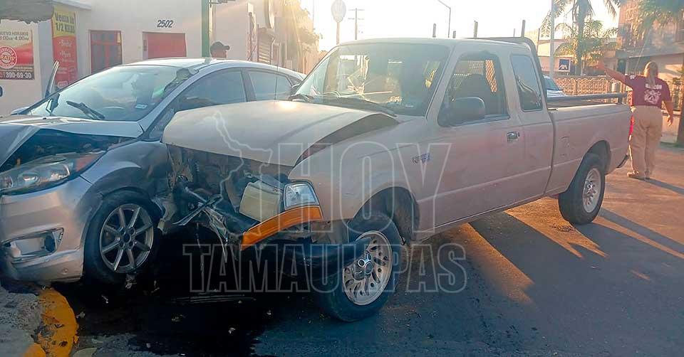 Conductora invade vía de preferencia y causa choque en Nuevo Laredo