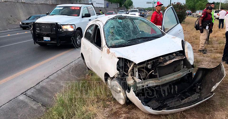 Volcadura en avenida de Nuevo Laredo deja una lesionada