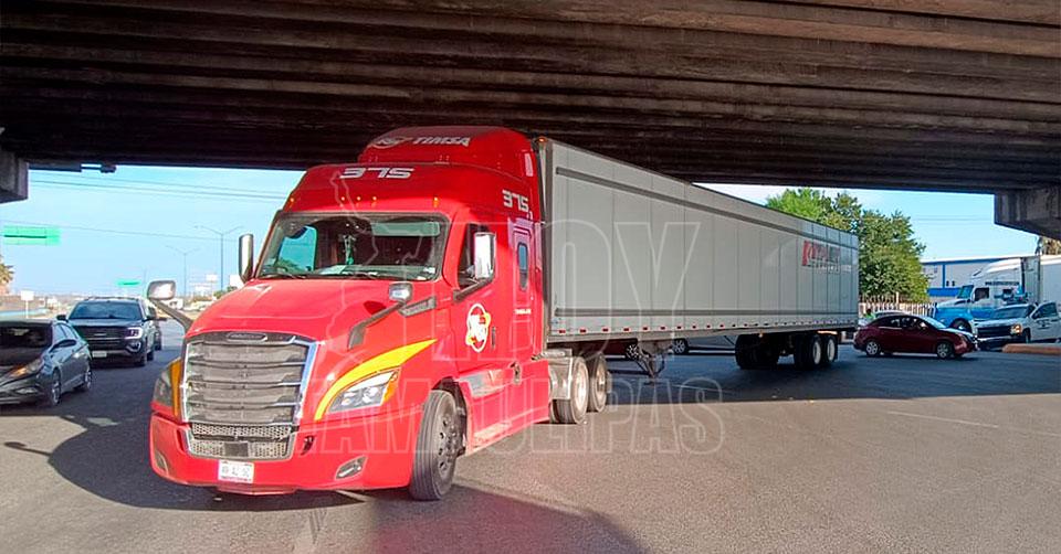 Trailero no mide bien y choca camioneta en Nuevo Laredo