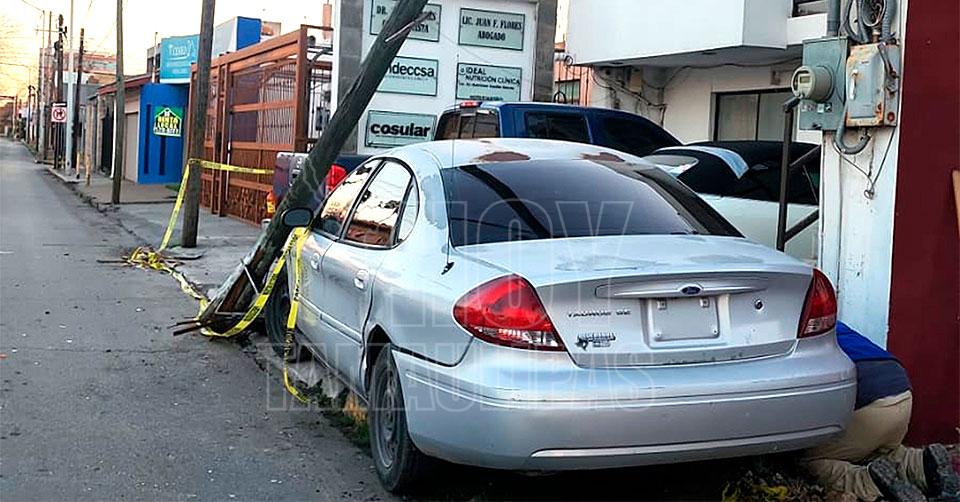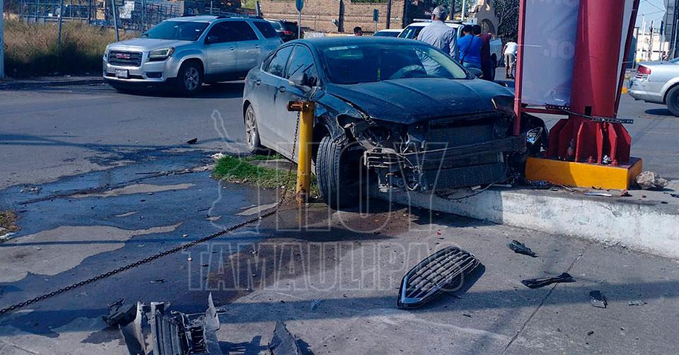 Se impacta con poste de anuncio en Nuevo Laredo tras choque