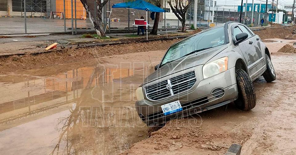 Mujer cae en zanja con su carro y sale ilesa en Nuevo Laredo