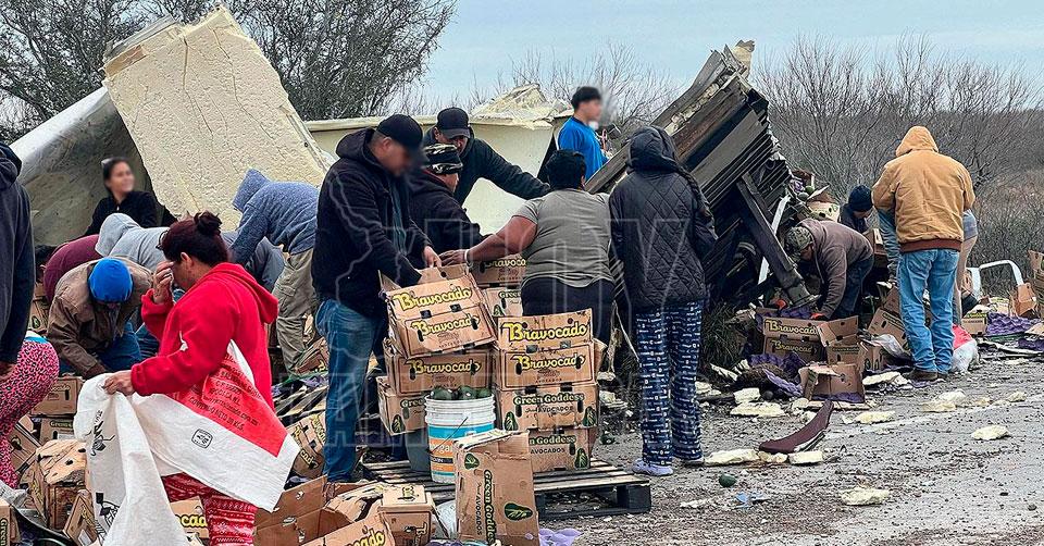 Choque de tráileres deja toneladas de aguacate en vía de Nuevo Laredo