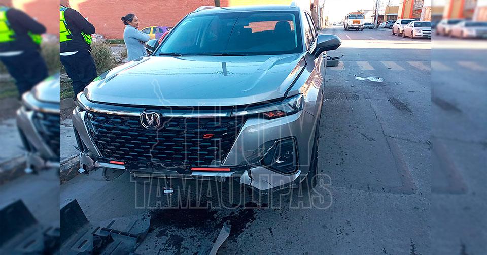 Mujer distraída choca contra una camioneta nueva en Nuevo Laredo