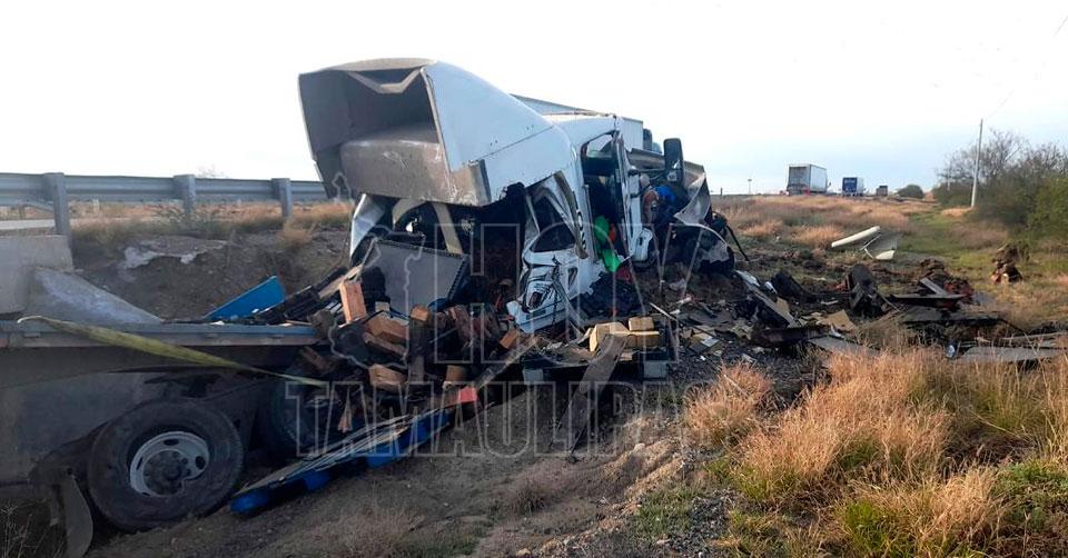 Trailero sufre accidente en carretera a Nuevo Laredo