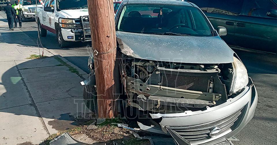 Ebrio choca contra poste en Nuevo Laredo y deja herida a su acompañante