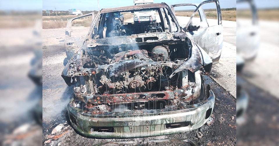 Canadiense se salva al incendiarse su camioneta en carretera a Nuevo Laredo