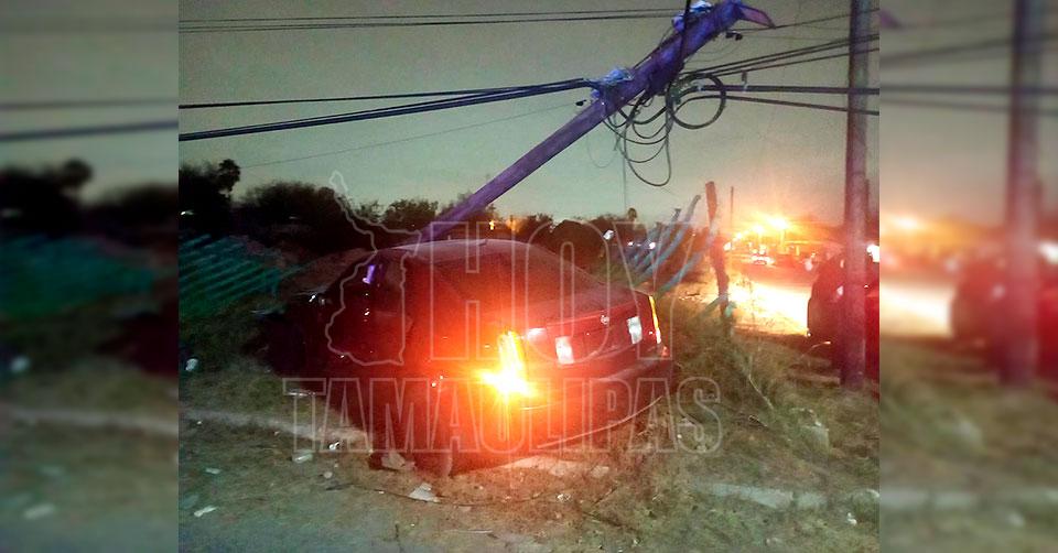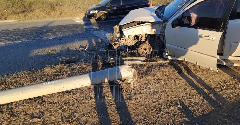 Conductor choca contra poste de luz por falla mecánica en Nuevo Laredo