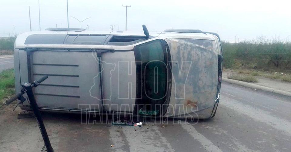 Vuelca chofer y salva la vida en Nuevo Laredo