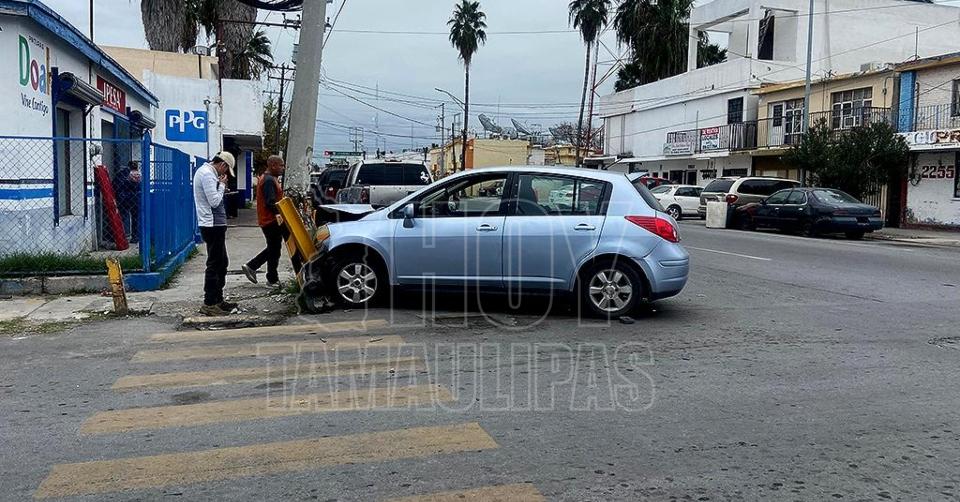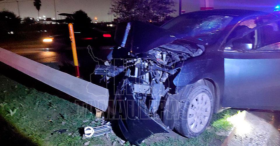 Conductor abandona su coche tras chocarlo contra poste en Nuevo Laredo
