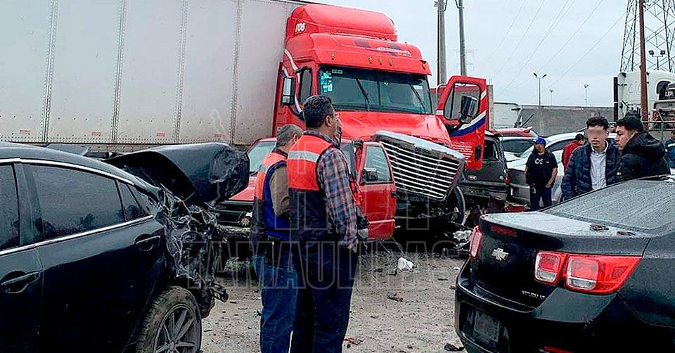 Trailero pierde el control y hace ‘chuza’ con nueve vehículos en Nuevo Laredo