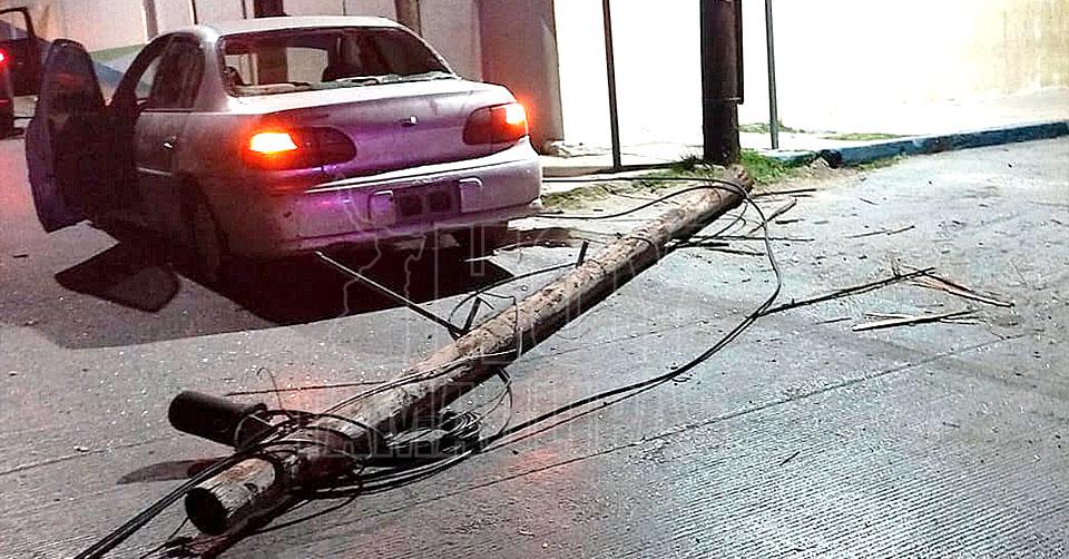 Ebrio choca contra poste y lo derriba en Nuevo Laredo