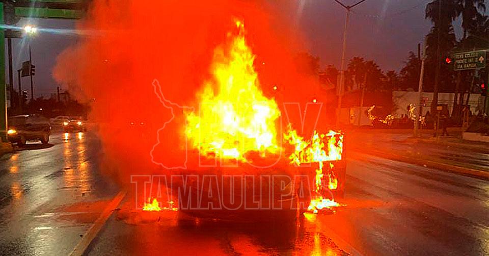 Mujer se salva de morir tras choque e incendio de su auto en Nuevo Laredo