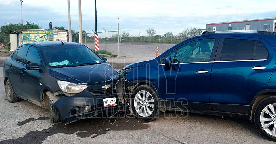 Choque frontal entre auto y camioneta deja daños en Nuevo Laredo