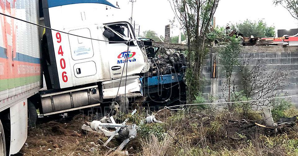 Trailero se estrella contra una barda y sobrevive, ocurrió en Nuevo Laredo