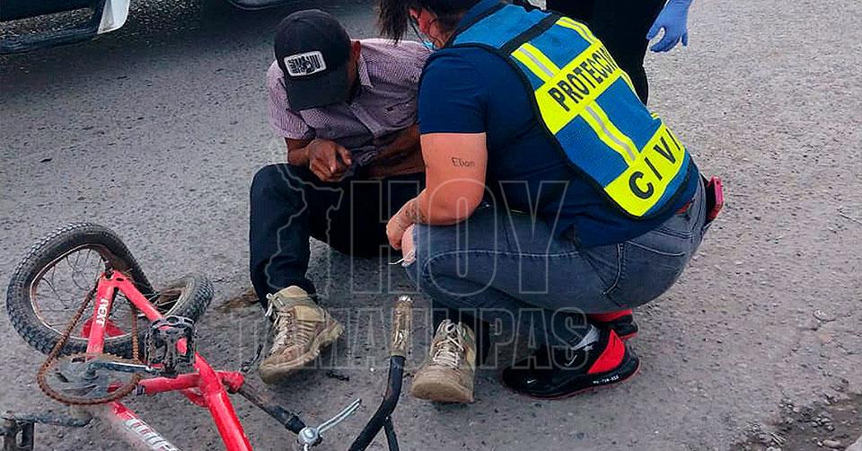 Ciclista resulta herido al chocar con camión urbano en Nuevo Laredo