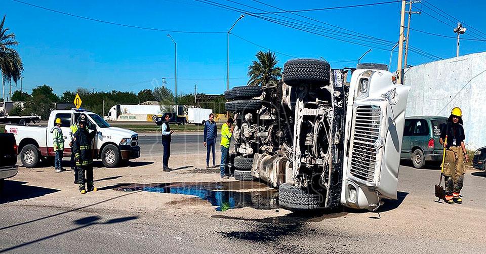 Vuelca tolva con cemento en la Carretera Nacional de Nuevo Laredo