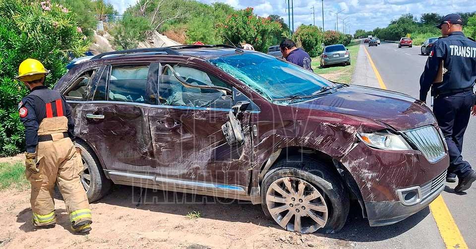 Joven se salva de milagro tras volcar su camioneta en bulevar de Nuevo Laredo