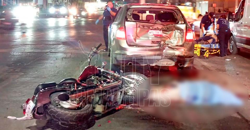 Motociclista fallece y acompañante resulta herido tras brutal choque en Nuevo Laredo