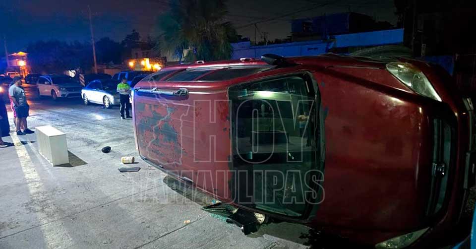 Choca, vuelca y huye tras aparatoso accidente en Nuevo Laredo