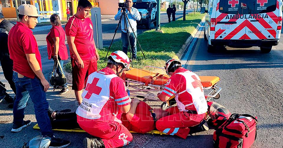 Mujer herida al chocar motocicleta con auto en Nuevo Laredo