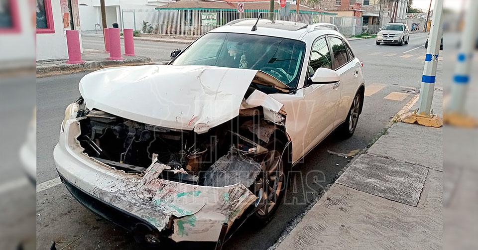Encontronazo deja cuantiosos daños en vehículos y poste en Nuevo Laredo