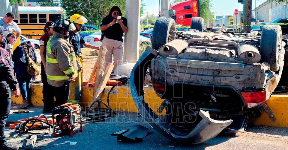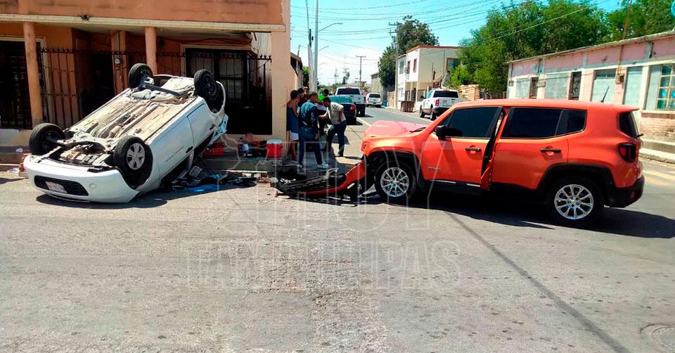 Choque con volcadura deja cuantioso daños en Nuevo Laredo