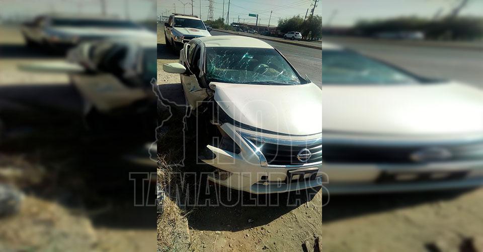 Chofer provoca choque y deja auto trepado en barda en Nuevo Laredo