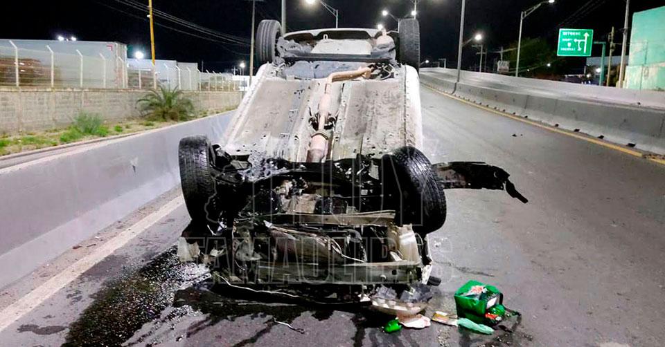 Conductor huye tras volcar su auto en Nuevo Laredo