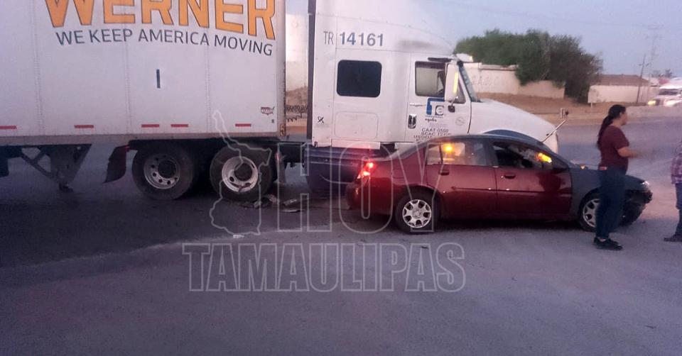 Deja daños choque entre tráiler y auto en Nuevo Laredo