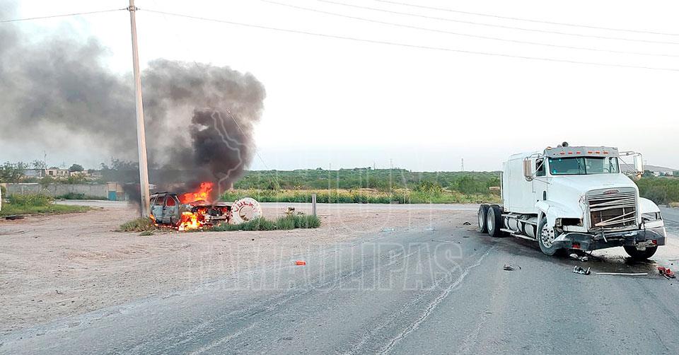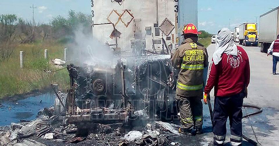 Se salva trailero al incendiarse su unidad en Nuevo Laredo