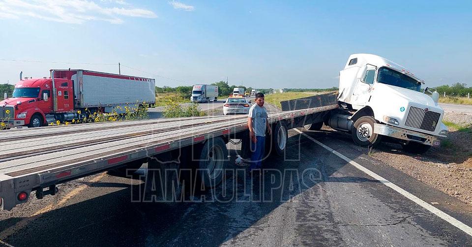 Chofer de tráiler se salva tras accidente en Nuevo Laredo