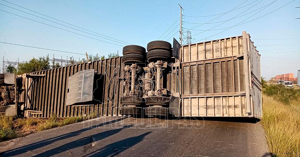 Vuelca chofer de tráiler y sobrevive en Nuevo Laredo