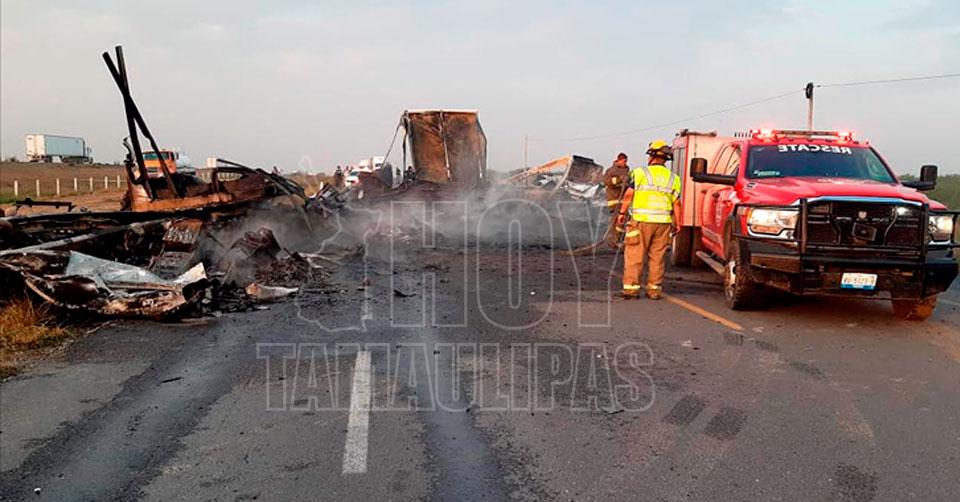 Choque con incendio deja chofer con quemaduras cerca de Nuevo Laredo